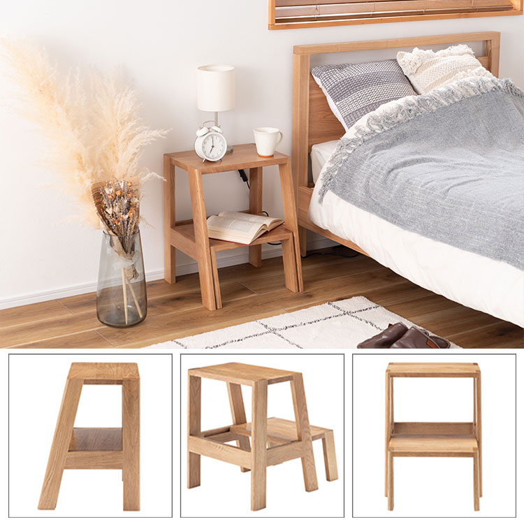 踏み台 スツール サイドテーブル 収納ステップ 天然木オーク 木製スツール ナチュラル家具 北欧風 おしゃれ家具 コンパクト