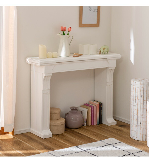 マントルピース コンソールテーブル 飾り棚 ディスプレイ台 アンティーク風 クラシック家具 フェイク暖炉 スリムテーブル おしゃれ家具 インテリア装飾 ホワイトインテリア