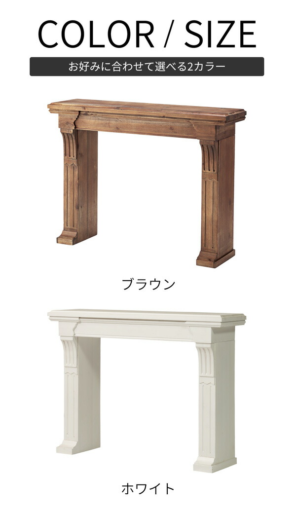 アンティーク調の装飾が美しい「MTP-100」は、リビングや玄関をエレガントに演出するマントルピース。立体的な彫刻風デザインと、温かみあるブラウン、洗練されたホワイトの2色展開で、インテリアに合わせて選べます。幅100cmの程よいサイズ感は、花瓶や雑貨、アートなどを飾るのにぴったり。背面はオープン構造で軽量設計ながら安定感もあり、壁面ディスプレイの主役になるアイテムです。