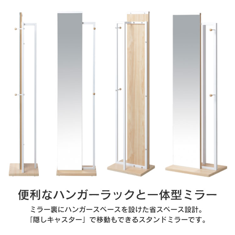 スタンドミラー, ハンガーラック付きミラー, 省スペース家具, 全身鏡, 飛散防止ミラー, おしゃれなインテリア, 玄関ミラー, 寝室ミラー, オフィス用ミラー, 一人暮らし家具, 弘益, HM-400