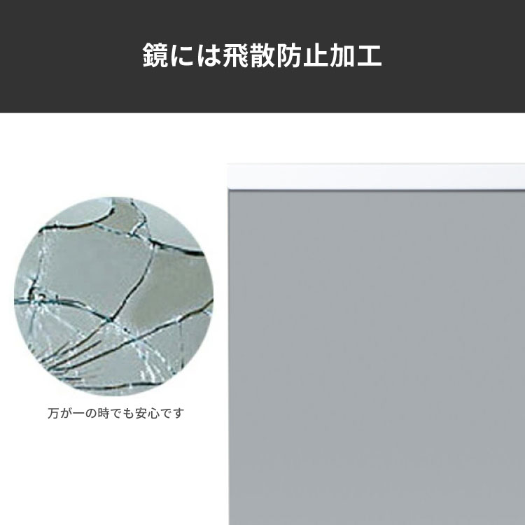 | 材質 鏡背面:パーティクルボード(15mm厚) 塩ビシート貼り、フレーム:スチール(□20×20mm) 粉体塗装、ベース:MDF(25mm厚) 塩ビシート真空成型 | ||||||||