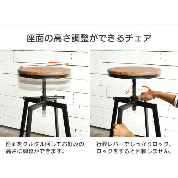 高さ調整スツール、インダストリアル家具、カフェチェア、カウンタースツール、おしゃれスツール、店舗用家具、ブラックフレームチェア