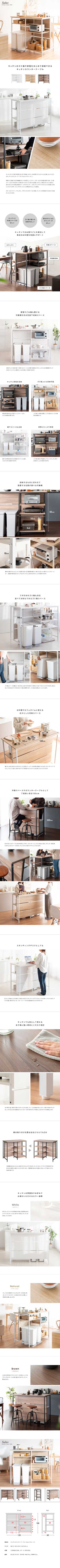 | 商品説明 キッチンのゴミ箱や家電をまとめて収納しながら、お料理やカフェタイムもお楽しみいただけるキッチンカウンターテーブル『Salus(サルース)』。無駄なく収納できる可動棚のラックは電子レンジやトースターなどの家電も置けます。ゴミ箱スペースはフタ付きのゴミ箱を並べられてゴミ捨ても快適。広々とした幅120cmと丁度良い高さ100cmの天板は調理スペースやカウンター、スタンディングデスクなどとにも快適にお使いいただけます。リビングやキッチンとの間仕切りとしても便利。カラーはホワイト、ナチュラル、ブラウンの3カラーをご用意。キッチンの雰囲気やお好みでお選びいただけます。 | ||||||||