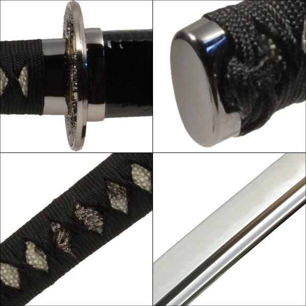 | 材質 鞘:朴の木、柄:プラ製(白鮫)、金具:合金、下緒:人絹 黒糸、柄糸:人絹 黒糸 | ||||||||