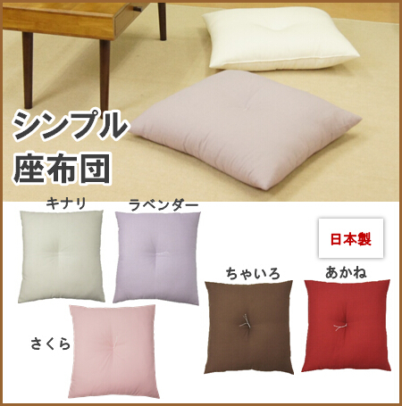 シンプル座布団55×59cm(銘仙判)キナリ・ラベンダー・こげ茶・あかね・和風にも洋風にも・日本製・中材・新生活・一人暮らし・来客用