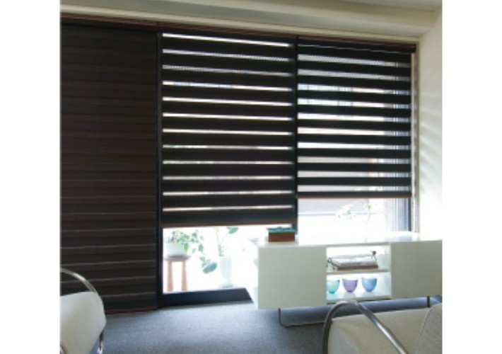 送料無料メーカー発送。チェーン1本で簡単操作。2種類の生地をボーダー柄に織り込んだスクリーンが上下に交差することにより、光の量をコントロールできます。