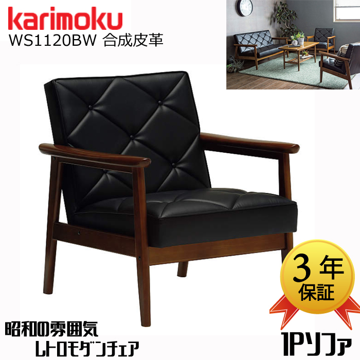karimoku/合成皮革/日本製/椅子/1Pソファ/レトロモダン/応接ソファ/送料無料