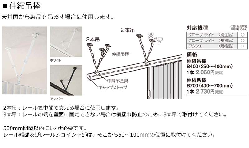 【本体と同時注文で送料無料】アコーデオンドア TOSO オプション部品 伸縮吊棒B700(400〜700mm)1本