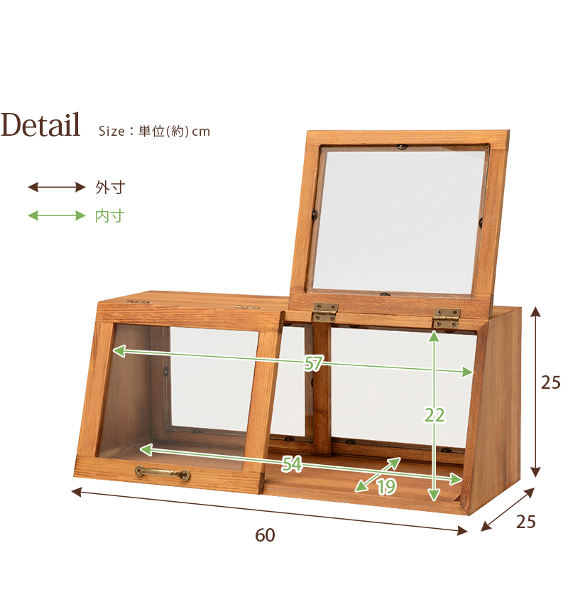 木の風合いが味わい深いカウンター上ガラスケース表と裏で違う表情を見せる形状でディスプレイとしても活躍 カウンター上ガラスケースMUD-6067