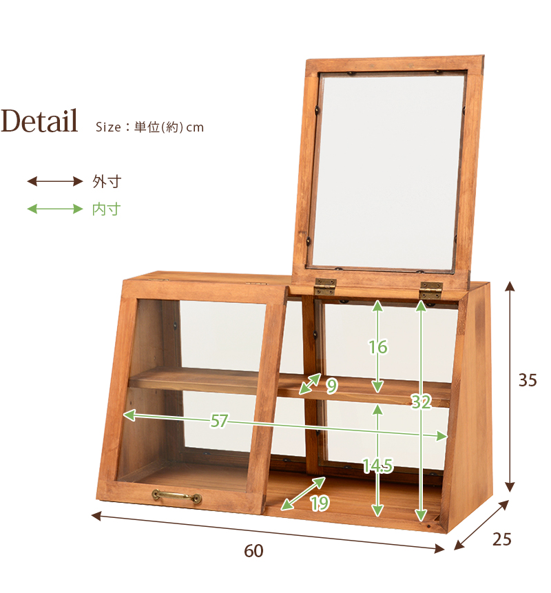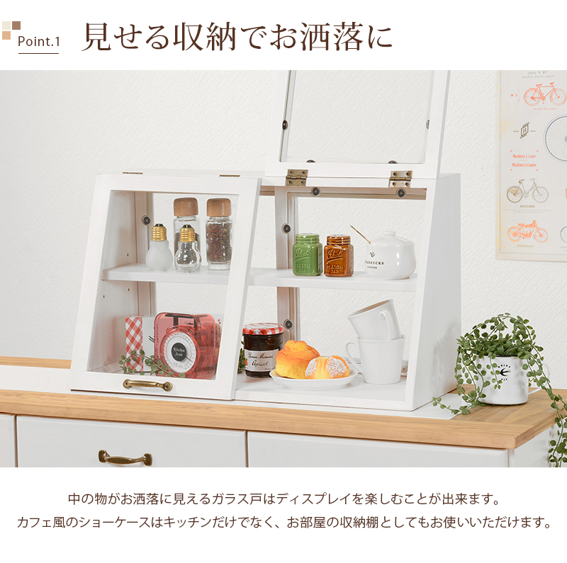 木の風合いが味わい深いカウンター上ガラスケース表と裏で違う表情を見せる形状でディスプレイとしても活躍 カウンター上ガラスケースMUD-6068