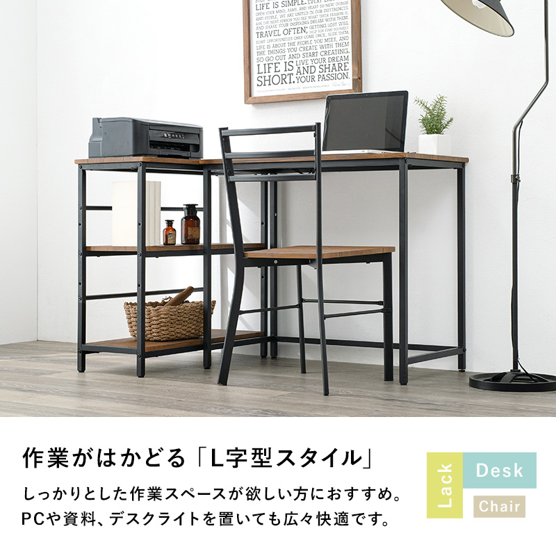 デスクとラックは高さが同じなので広い作業スペースとして使用 デスクチェア3点セット ldc46973rs