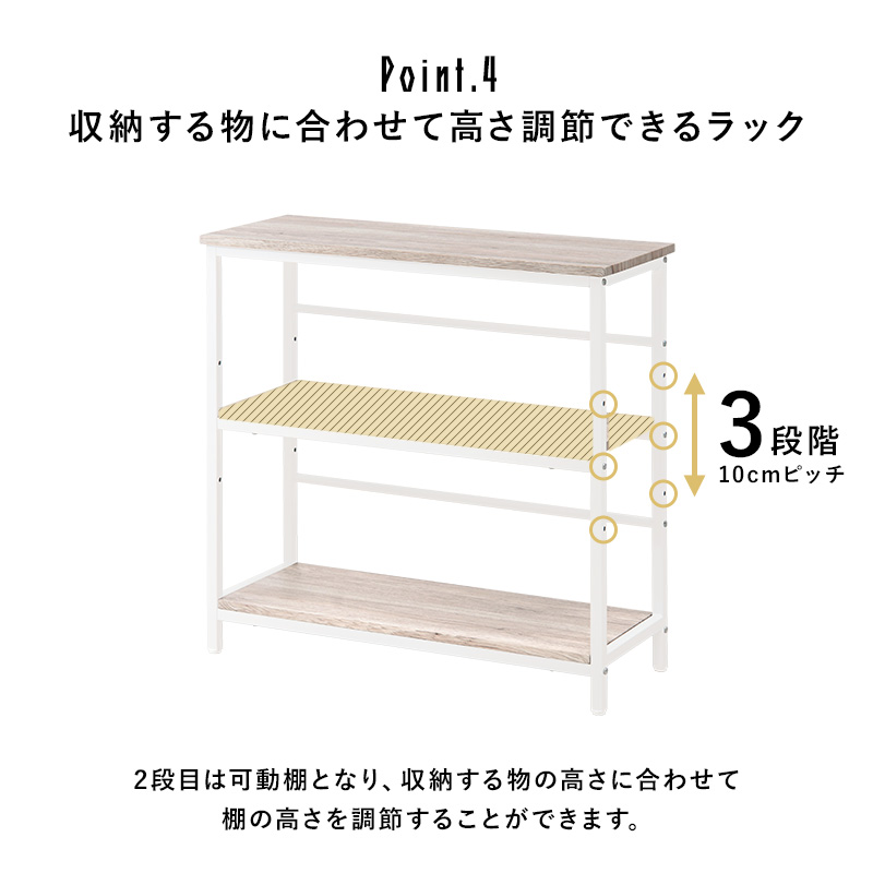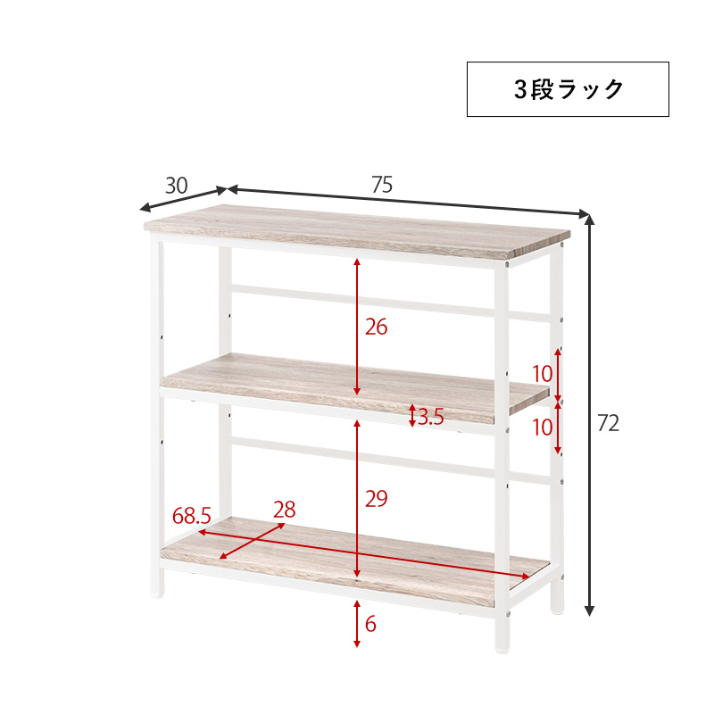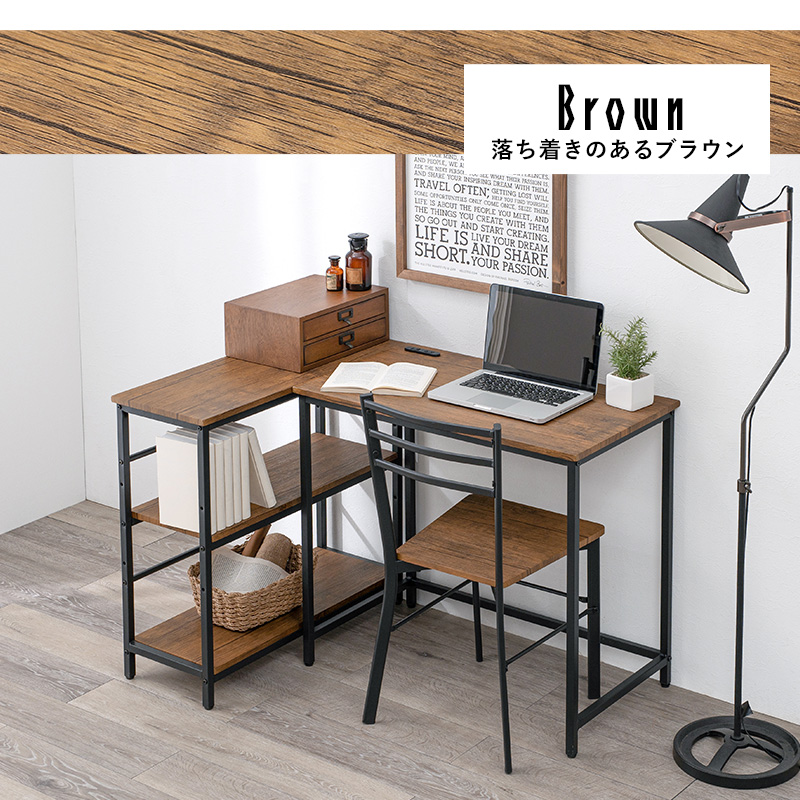 デスク・チェア・3段ラックの3点セット。デスクとラックは高さが同じなので広い作業スペースとして使ったり、別々にシリーズ家具としてコーディネートしたりとレイアウトを変えられます。
