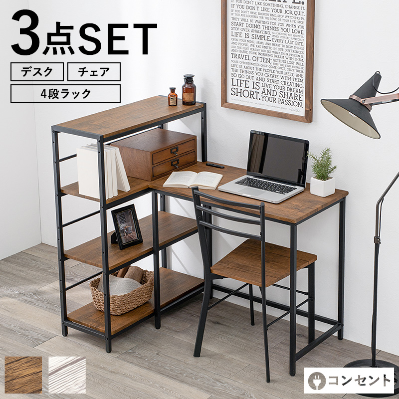 収納力の高いラック付き デスクチェア3点セット ldc46974rs