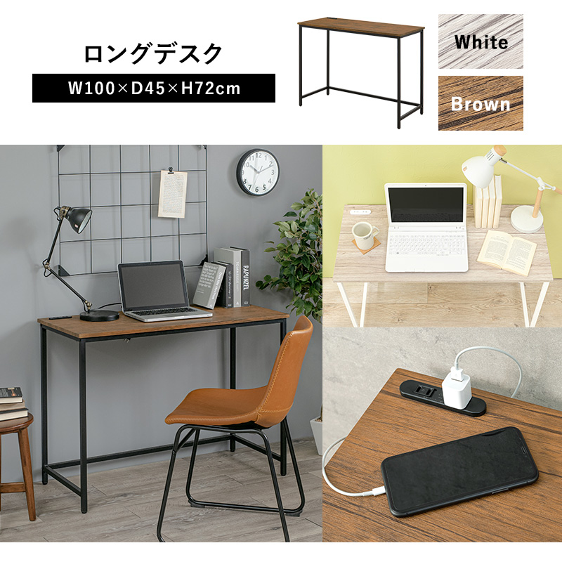 広々作業ができる幅100cmのロング設計。コンセント付きなのでデスクワークからドレッサー使いまで多様なシーンで活躍します。