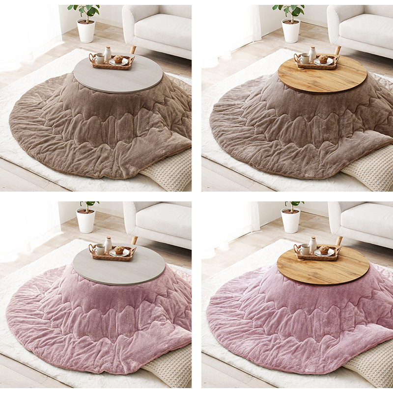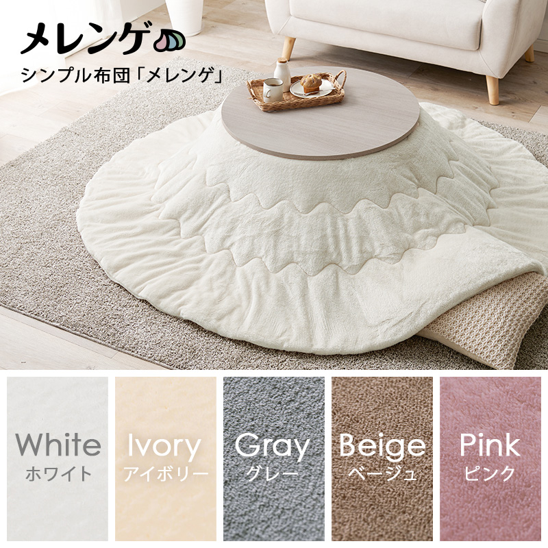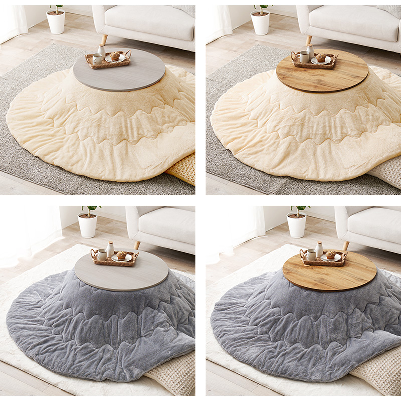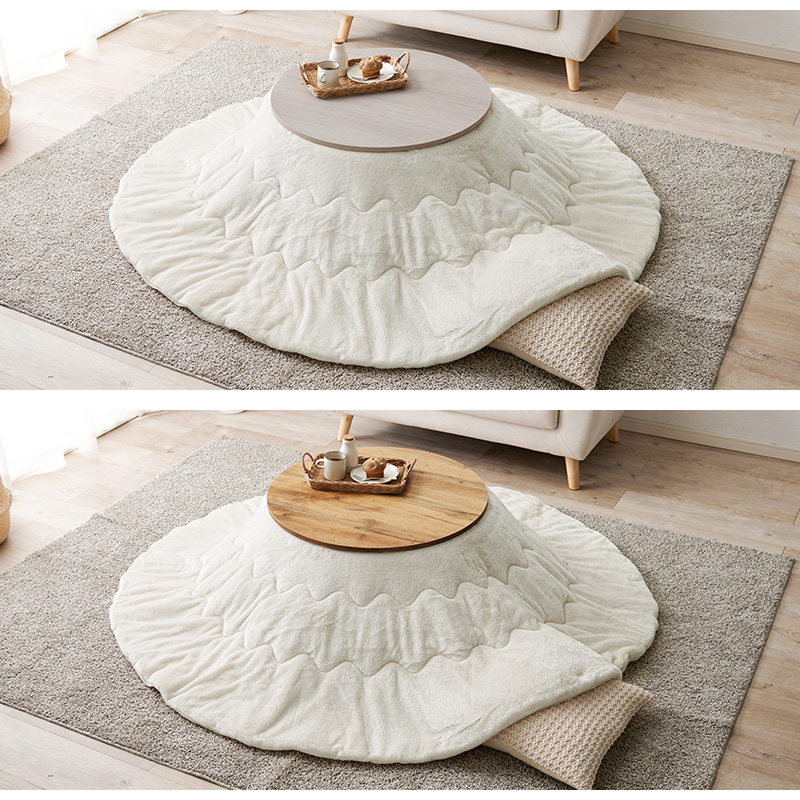 脚は折りたたんで隙間に収納も可能なコンパクト円形こたつ とろけるような肌触りのシンプルな掛け布団 こたつ+うす掛け布団 2点セットモネ68メレンゲ
