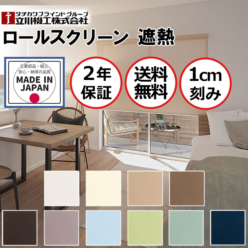 送料無料 カーテンレール 取付可 無地 窓回り 収納 目隠し 空間 間仕切り 立川機工 ロールスクリーン ココルン遮熱