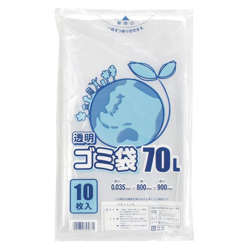 シモジマ HEIKO ゴミ袋 035E 70L 透明 006604820 10枚入