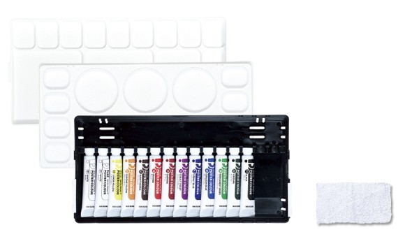セット内容:●12色12mlチューブ 各1本+ホワイト12?チューブ1本 ●パレット2枚、ミニタオル、混色表付 ※25cm定規がセットできます。