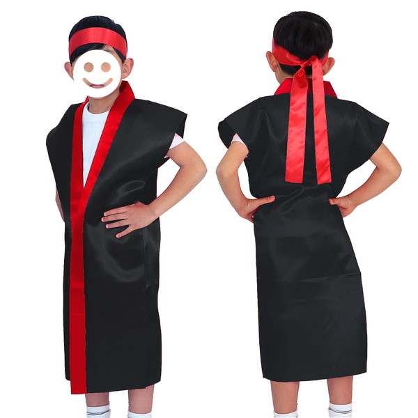 アーテック サテンロングハッピ 黒(赤襟) J(ハチマキ付) 14427