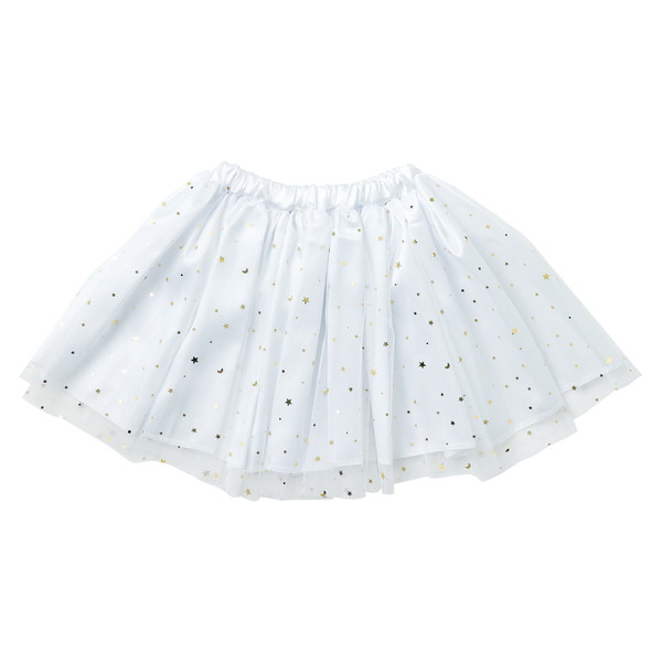 キラキラ輝くチュールと光沢感のあるサテンを重ねた2層構造で、ボリュームたっぷりのスカートです。