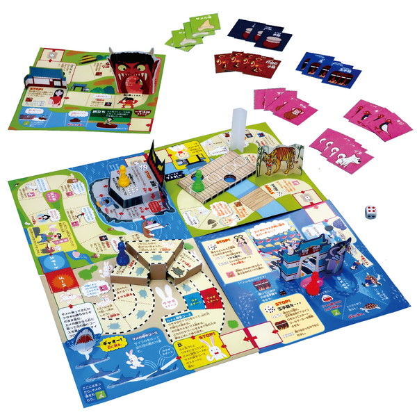 昔話の世界を冒険できるすごろくです。5つの昔話ステージ(桃太郎、一寸法師、ウサギ(因幡の白兎・うさぎとかめ)、浦島太郎、一休さん)を組み合わせて遊べます。立体的な新感覚のすごろくです。梅花女子大学こども教育学科とアーテックとの産学連携によるコラボ商品です。2〜4人用。