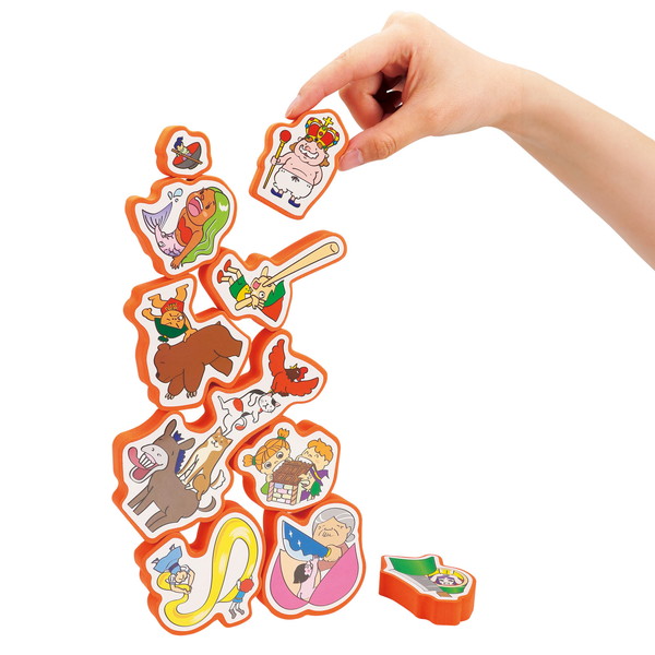 登場人物を当てっこしながら積み上げることで、昔話への興味が深まり、集中力や手指の器用さ、想像力のトレーニングにも繋がります。