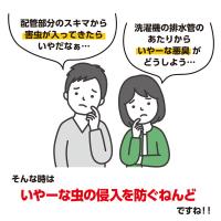 配管まわりのすき間をふさいで、嫌な虫の侵入や悪臭を防ぐ防虫ねんどです。