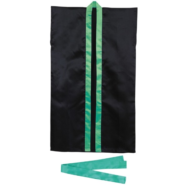 アーテック サテンロングハッピ 黒(緑襟)L(ハチマキ付) 3267
