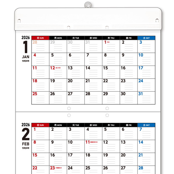 単月?12ヵ月の必要な期間だけを広げて使える自由表示タイプで、予定の全体像が一目で把握できます。