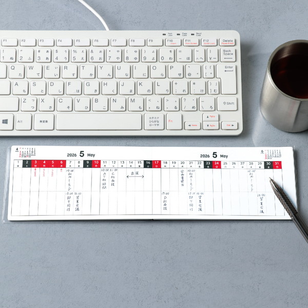 独自の貼り合わせ製本で見開きが1枚の紙のようにフラットに開く、スケジュール帳です。