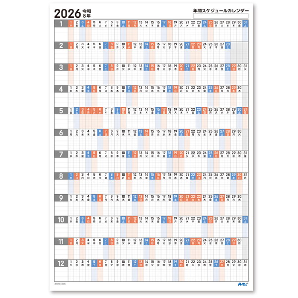1枚で年間スケジュールが一目でわかるカレンダーです。
