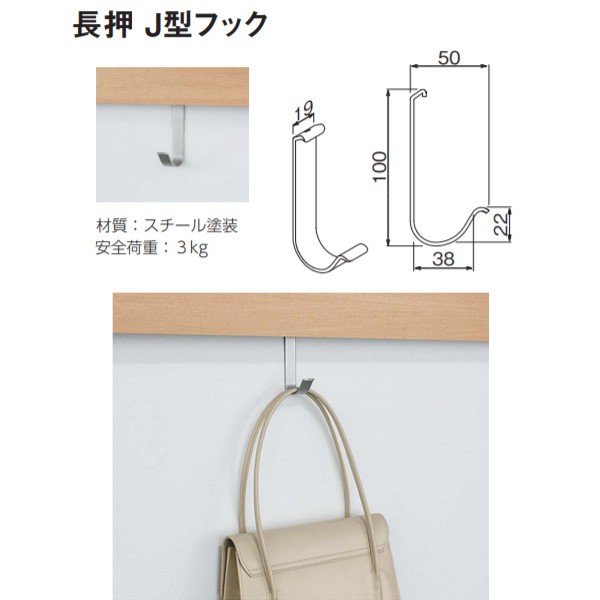 長さ、幅ともに大きめタイプのフックで、カバン等の吊り下げに最適です。