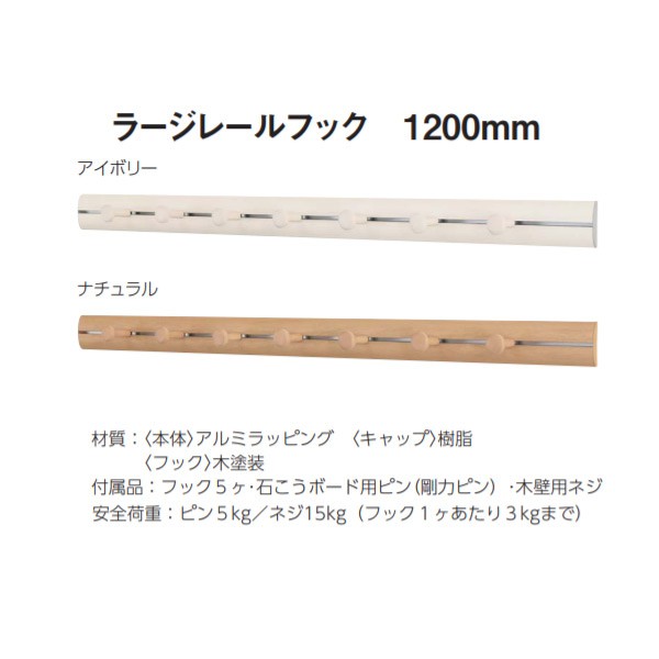 ピンでの取り付け:5kg ネジでの取り付け:15kg (フック1ヶあたり3kg)