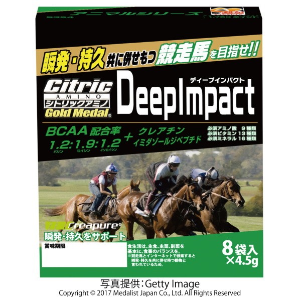 瞬発・持久を併せ持つ競走馬の筋肉の質から学んだメーカー独自のBCAAアミノ酸配合率[1.2(バリン):1.9(ロイシン):1.2(イソロイシン)]は瞬発・持久系アスリートをサポートします。