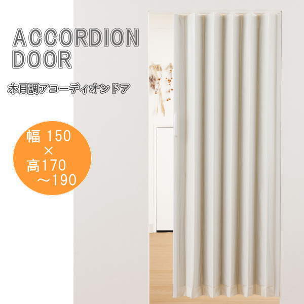 木目調アコーディオンドア ホワイトウッド 幅150×高さ170〜190cm L5570