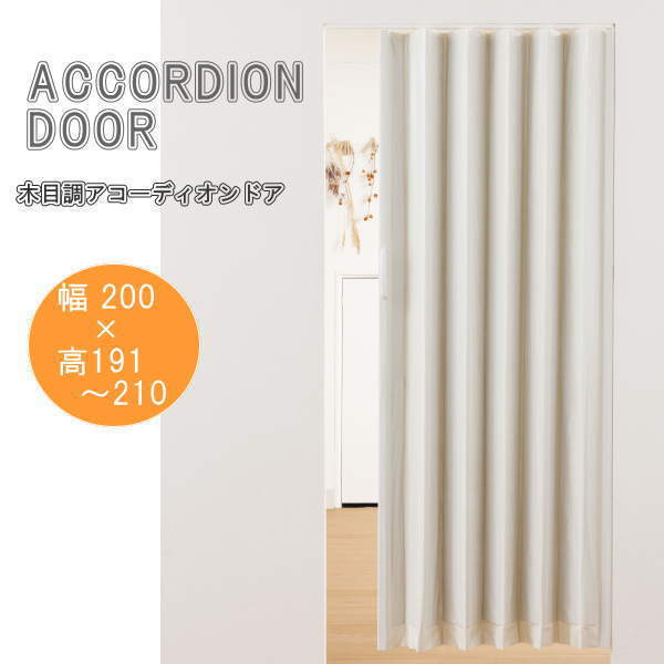 木目調アコーディオンドア ホワイトウッド 幅200×高さ191〜210cm L5574