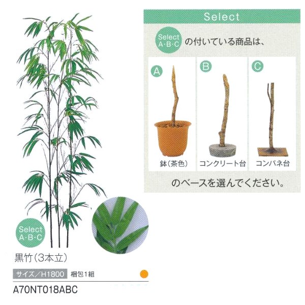 グローベン 屋内用 黒竹(3本立) H1800 1組 A70NT018ABC