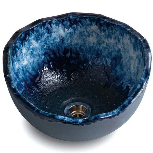 利休信楽 手洗い鉢 MEBIUSU 四季 031-40 濃藍(こいあい) 径400mm