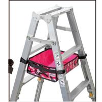 脚立の支柱に伸縮性の面ファスナーで取り付けができ、そのまま開閉ができるアンダーバッグ。