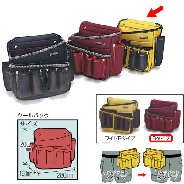※写真で前のポケットが4つの方です。前ポケットが5つの方はツールバッグワイドです。違う商品ページになります。