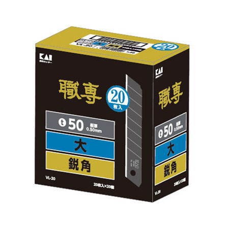 貝印 職専 カッター 替刃 VL-20 大 鋭角 黒刃 20枚