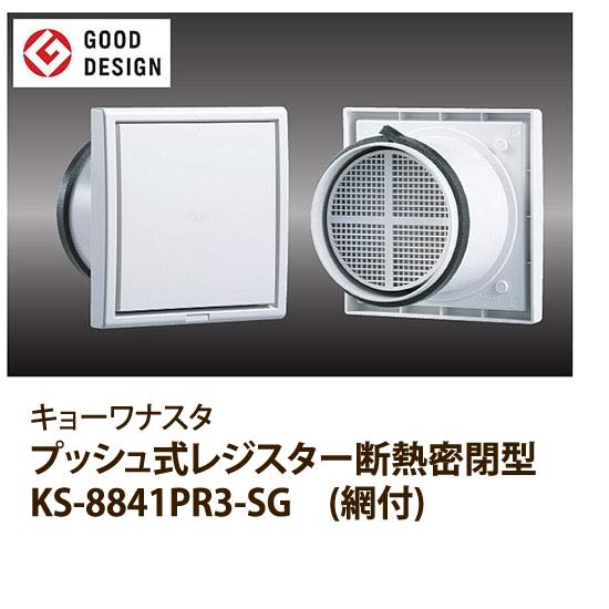 ナスタ プッシュ式レジスター断熱密閉式 シルバーグレー 網付 KS-8841PR3