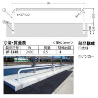カネソウ 駐輪パイプ JP-E24B スチール製 先付タイプ 埋込型 径42.7×H350×W2400mm