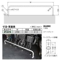 カネソウ 駐輪パイプ JP-E27A スチール製 後付タイプ ベースプレート型 径42.7×H350×W2700mm