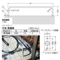 カネソウ 駐輪パイプ JP-S24A ステンレス製 後付タイプ ベースプレート型 径42.7×H350×W2400mm