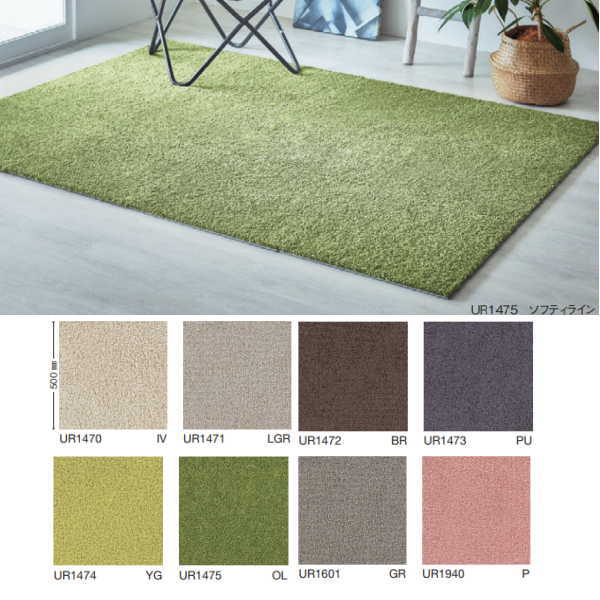 川島織物 ユニットラグ ソフティライン 滑り止め付き ラグ タイルカーペット 500×500mm 1枚