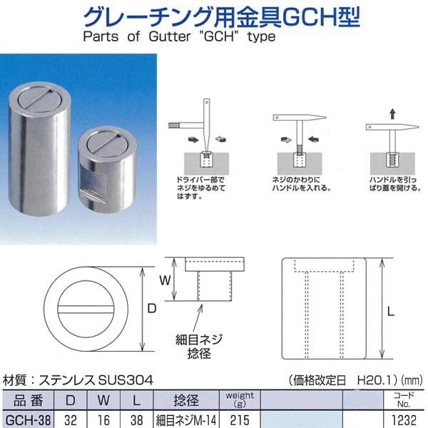 水本機械 グレーチング用金具 GCH型 GCH-38 NO.1232