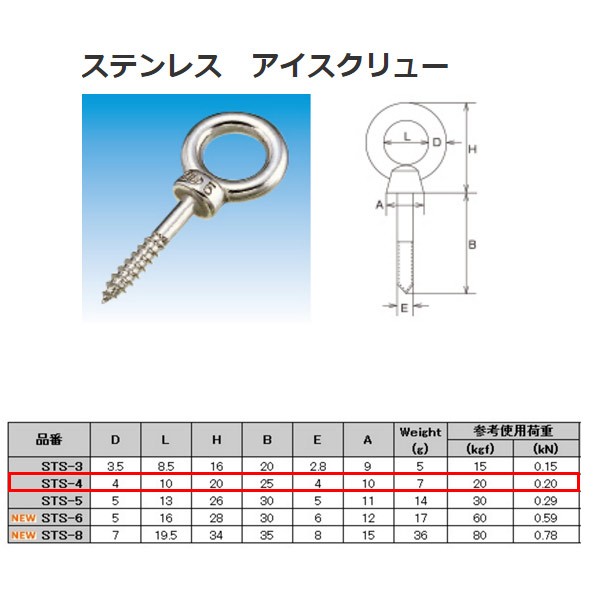 水本機械 ステンレス SUS304 ロングアイスクリュー LTS-4