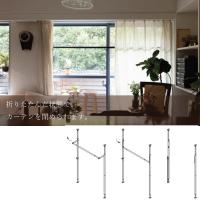 窓枠に沿って取り付けると一段とすっきり収まります。カーテンの裏に取り付ければ支柱は見えません。さらに、竿を取り外して竿掛けに収納すれば、存在感が一切なくなります。