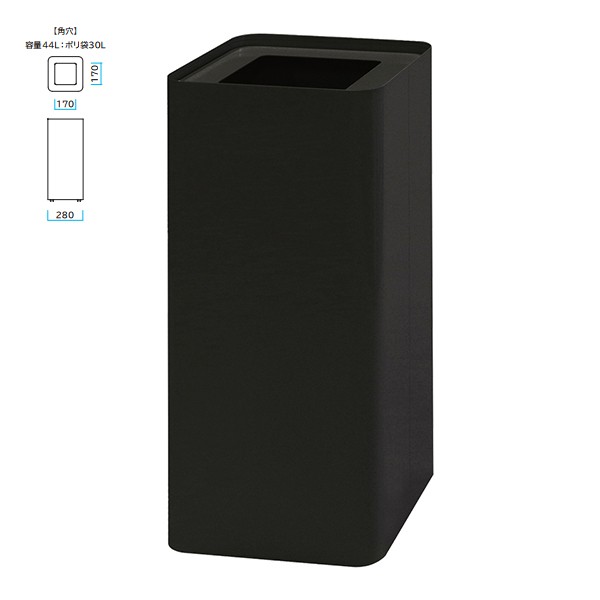 ミヅシマ Mseries 屑入S ブラック(艶消し) 投入口 ノーマル(表示無し)・角穴 間口280×奥行280×高さ650mm 362-0128